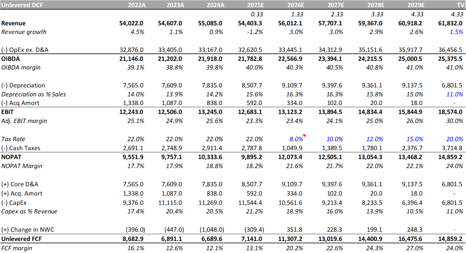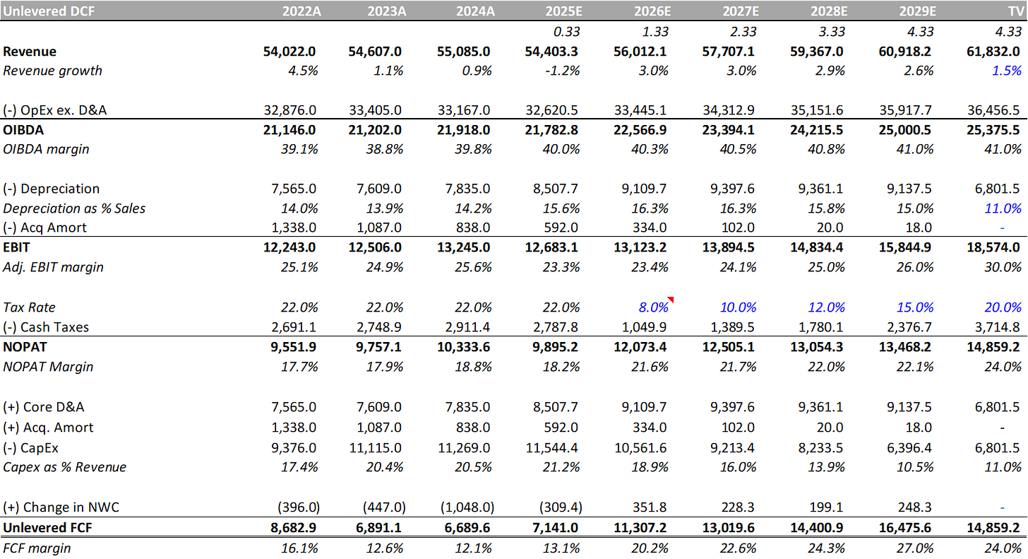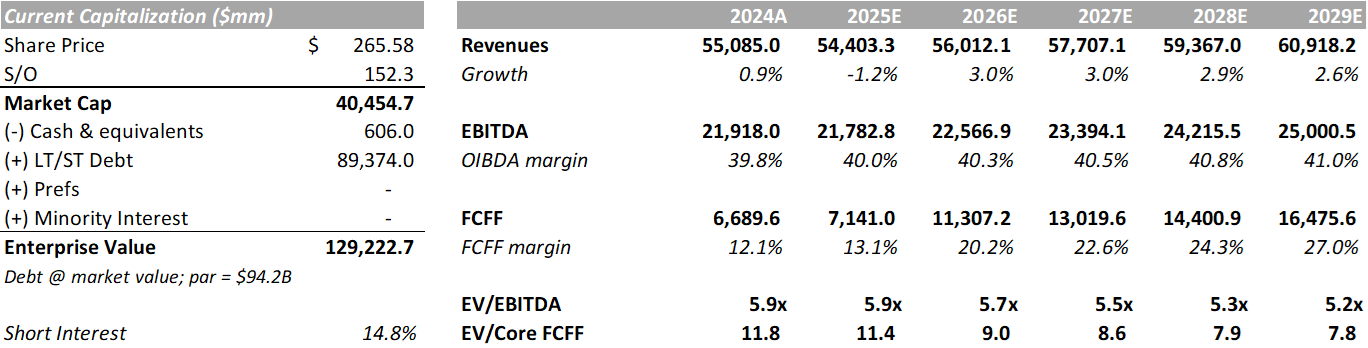 Note: Our base case, as outlined here, does not account for the potential benefit of the pending Cox merger. It does capture the pending LBRDK capital structure shift and the impact of the OBBB on Charter’s financials.